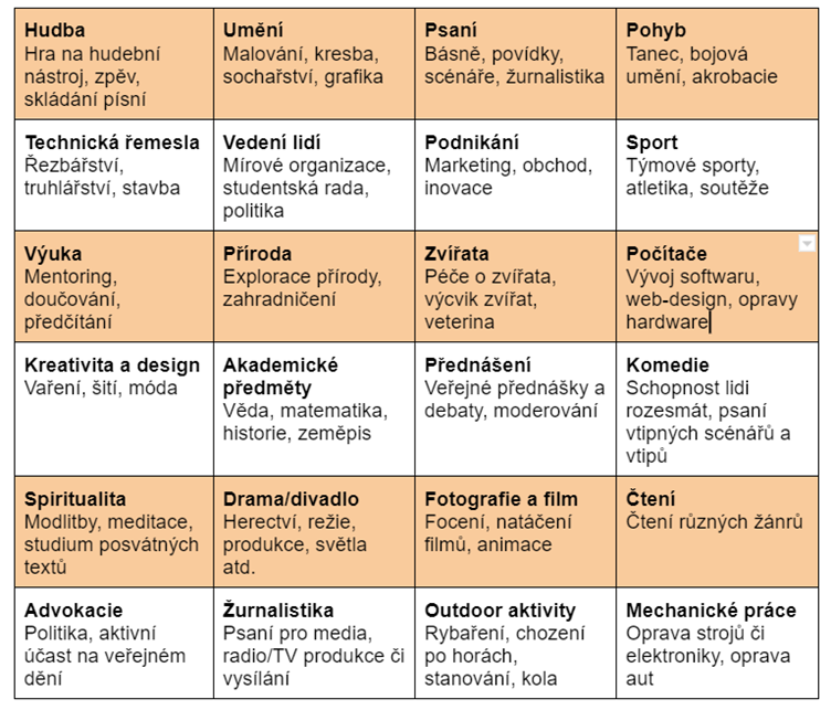 Jaké moje dovednosti a vášně mi pomůžou na cestě ke změně, kterou chci ve světě vidět? Jinými slovy v čem jsem dobrý*á a co mě baví. Jak mi pomůže: